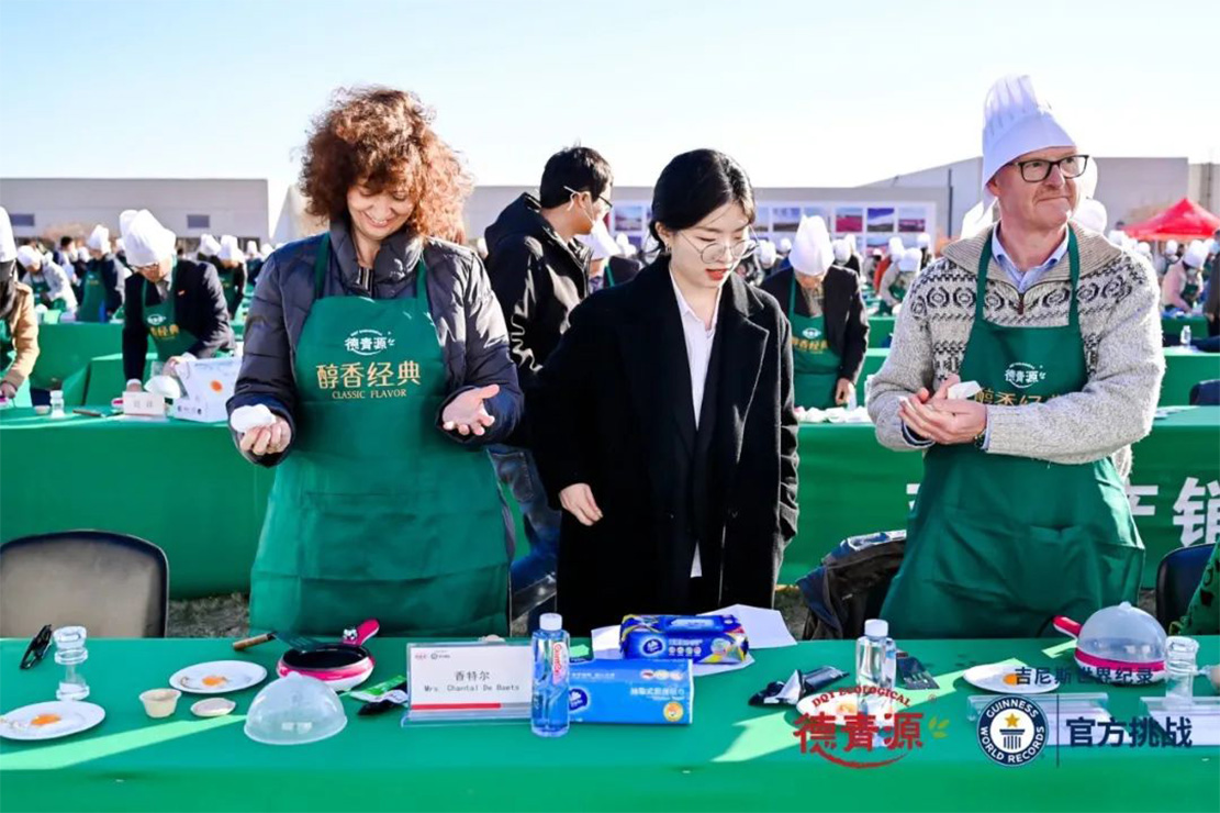 本次活動(dòng)經(jīng)吉尼斯官方確認(rèn),最終打破了“最多人同時(shí)煎蛋”(262人)的吉尼斯世界紀(jì)錄。與此同時(shí),本次挑戰(zhàn)吉尼斯活動(dòng)的主角——德青源“醇香經(jīng)典”無抗鮮雞蛋,更是引來了上海合作組織、比利時(shí)、土庫曼斯坦、薩摩亞、伊朗的駐華使節(jié)和夫人蒞臨現(xiàn)場,共同為挑戰(zhàn)吉尼斯助陣。